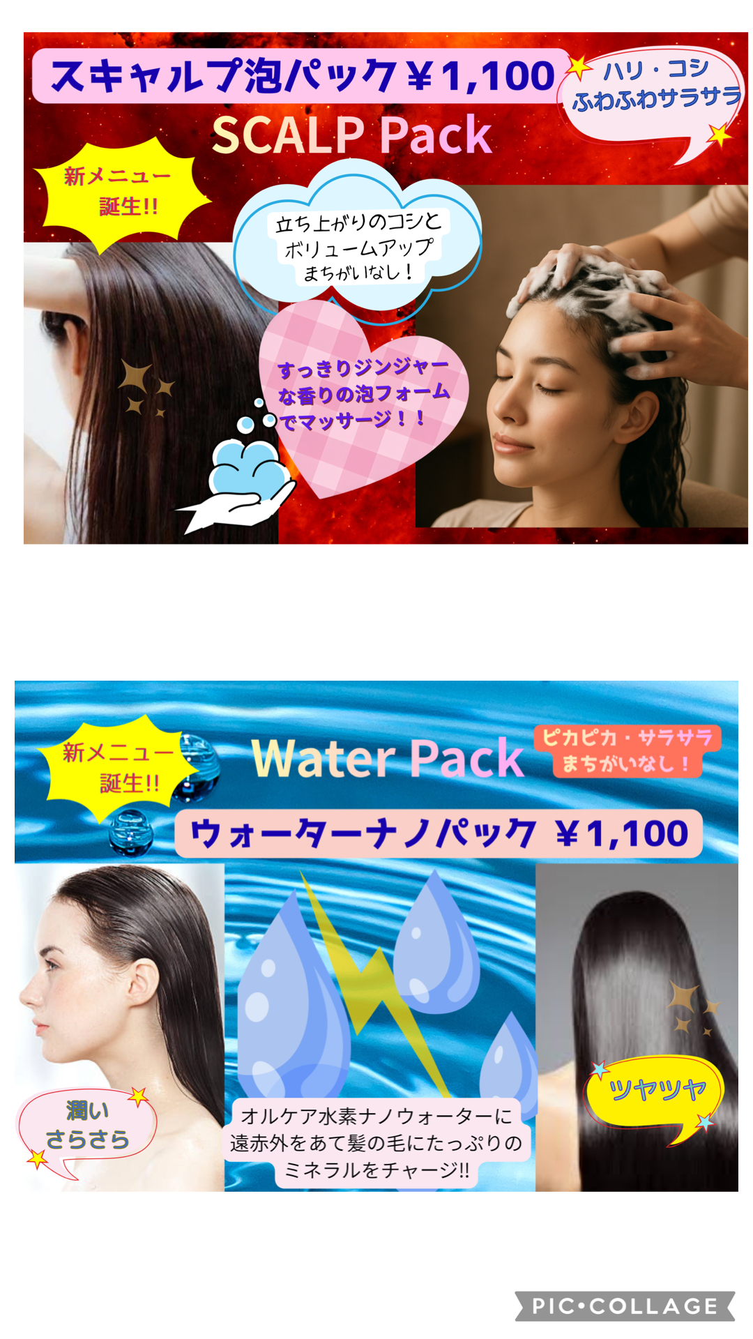 スキャルプ泡パック&ウォーターナノパック新メニュー登場!!