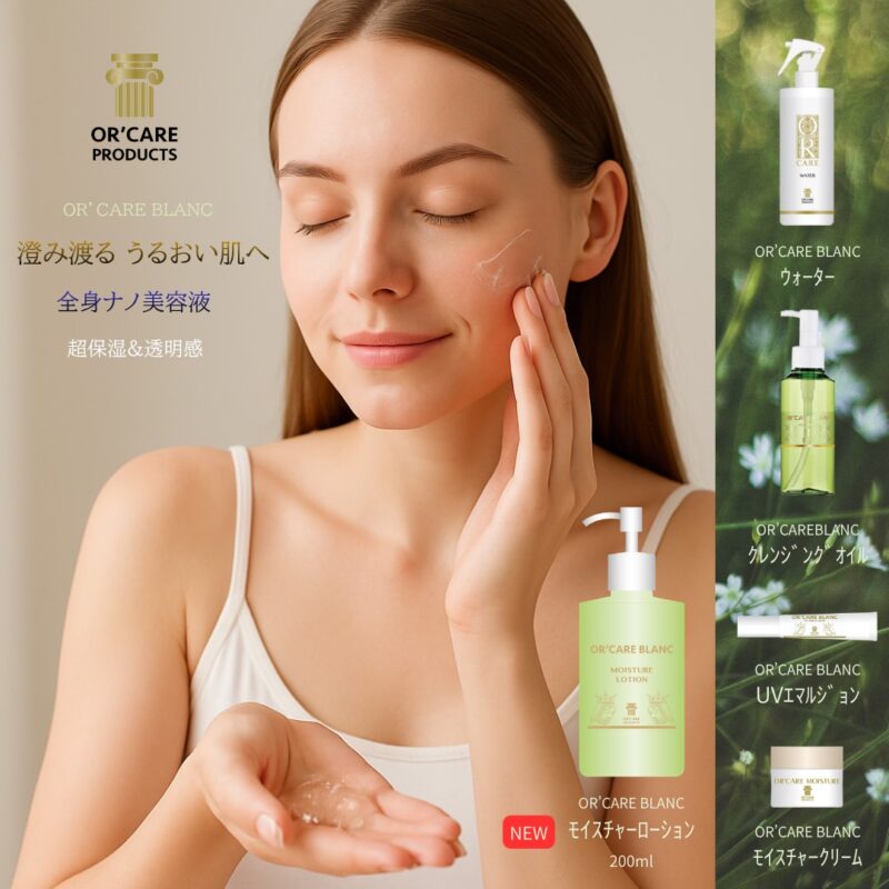 2026.02.28 お知らせ オルケアブラン モイスチャーローション新登場! 待望の全身ナノ美容液新発売! 「澄み渡る うるおい肌へ」 超保湿と美白、透明感のある肌へ!お子さまや肌荒れにお悩みの方にも安心してお使いいただけます